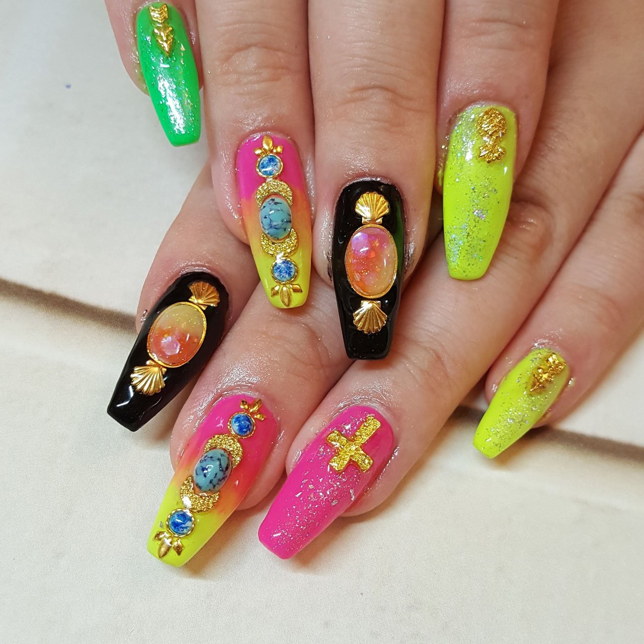 Yammy Nails 小田原さんはinstagramを利用しています オマカセネイル 派手ネイル Longnails シャネルネイル Chanelnails ネオンネイル カラフルネイル Neoncolor ご予約はトップペ ネオン ネイル カラフルネイル ネイル