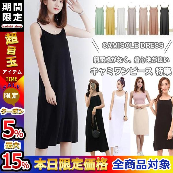 送料無料 キャミワンピース 倉庫 ペチコート レディース キャミワンピ 3タイプ ショート丈 ミモレ丈 シワなりにくい ロング丈 透け防止 インナ 通気性